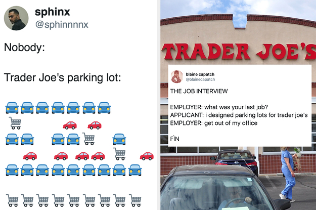 If You've Ever Tried To Park At Trader Joe's, These Jokes Are For You 7/28/2019 04:17:00 pm Food "If you didn’t have a near death experience in a parking lot, did you even go to Trader Joe’s?" View Entire Post › via BuzzFeed/Food SHARE THIS